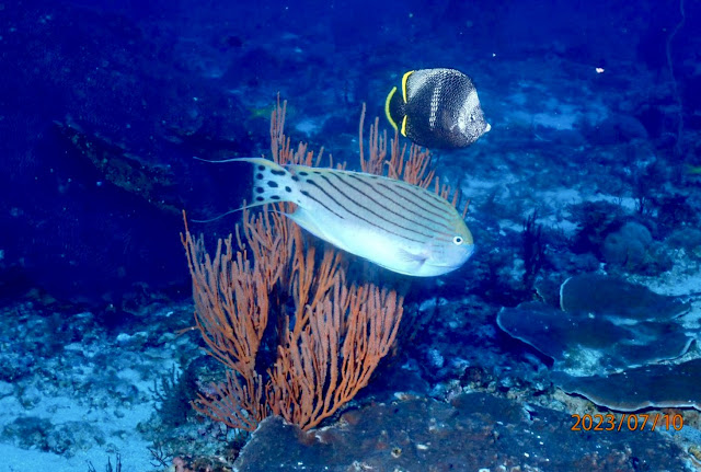 さて海の中ですが、小笠原の固有種「ミズタマヤッコ雄」と「ユウゼン」の1ショット。